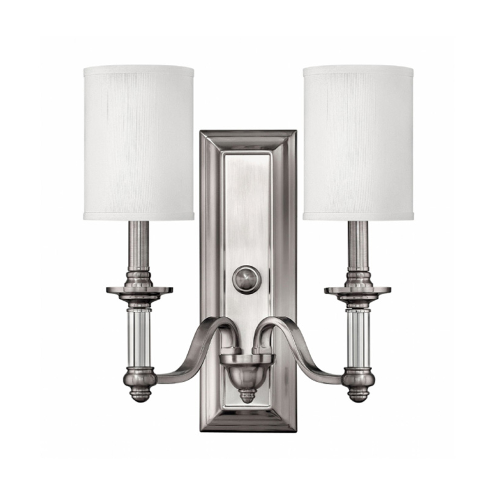 Бра с 2-мя белыми текстильными абажурами Hinkley Никель Белый Бежевый в Санкт-петербурге | Loft Concept