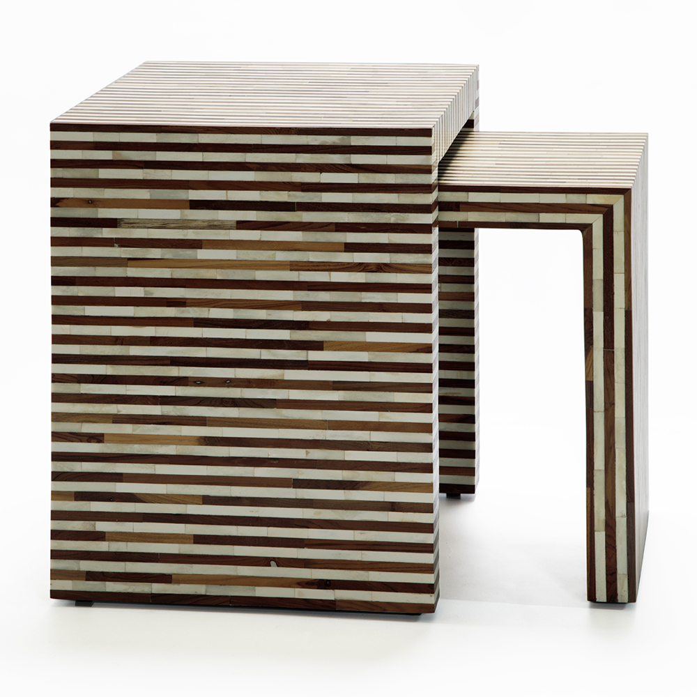 Комплект приставных столиков Stripes Set of tables Beige ivory ( слоновая кость ) Коричневый в Санкт-петербурге | Loft Concept