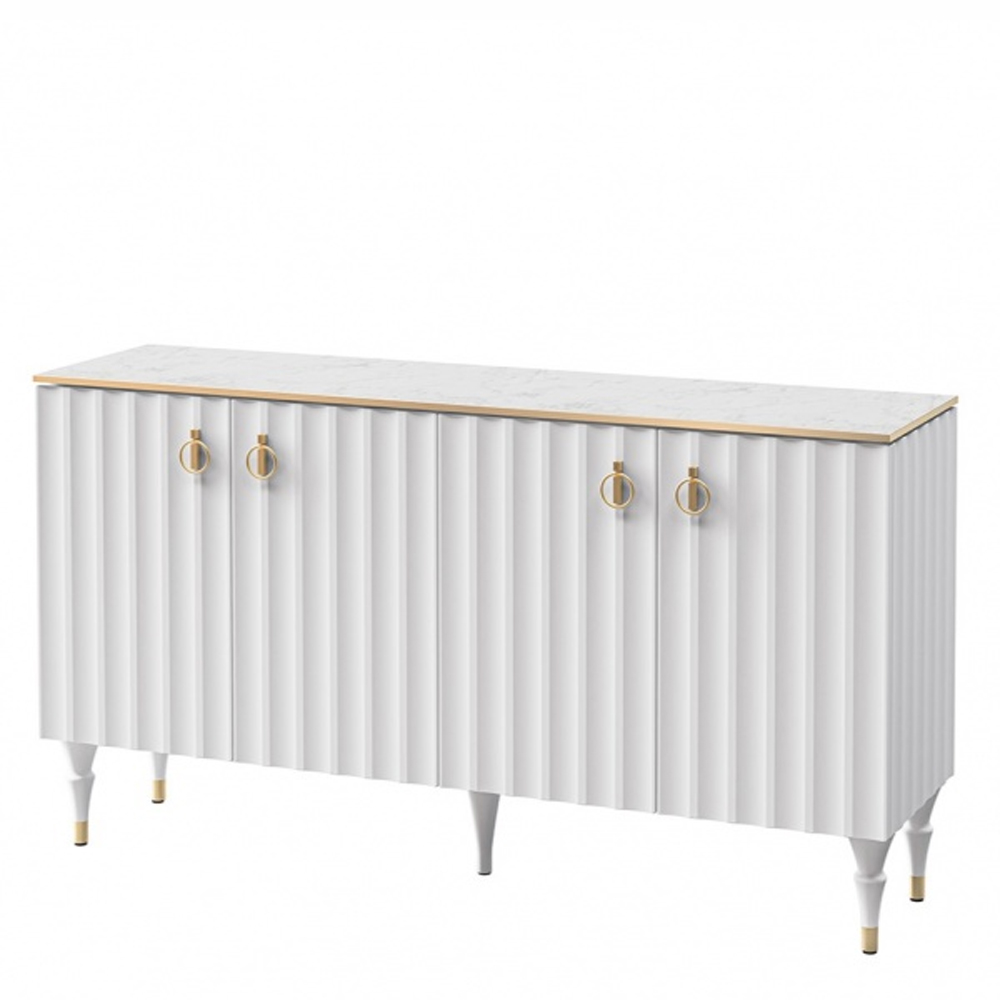 Консоль четырёхдверная с белым рельефным фасадом Expanses of Beauty Белый Золотой Белый Мрамор Bianco в Санкт-петербурге | Loft Concept