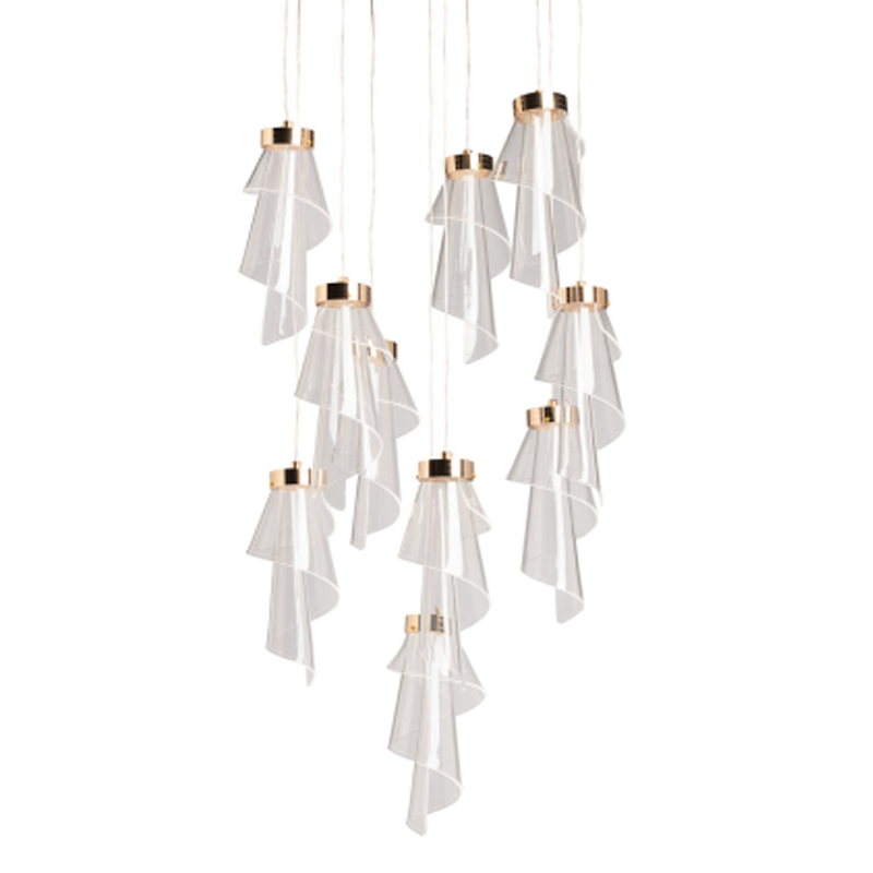 Люстра каскадная с 10-ю прозрачными плафонами Wave Line
