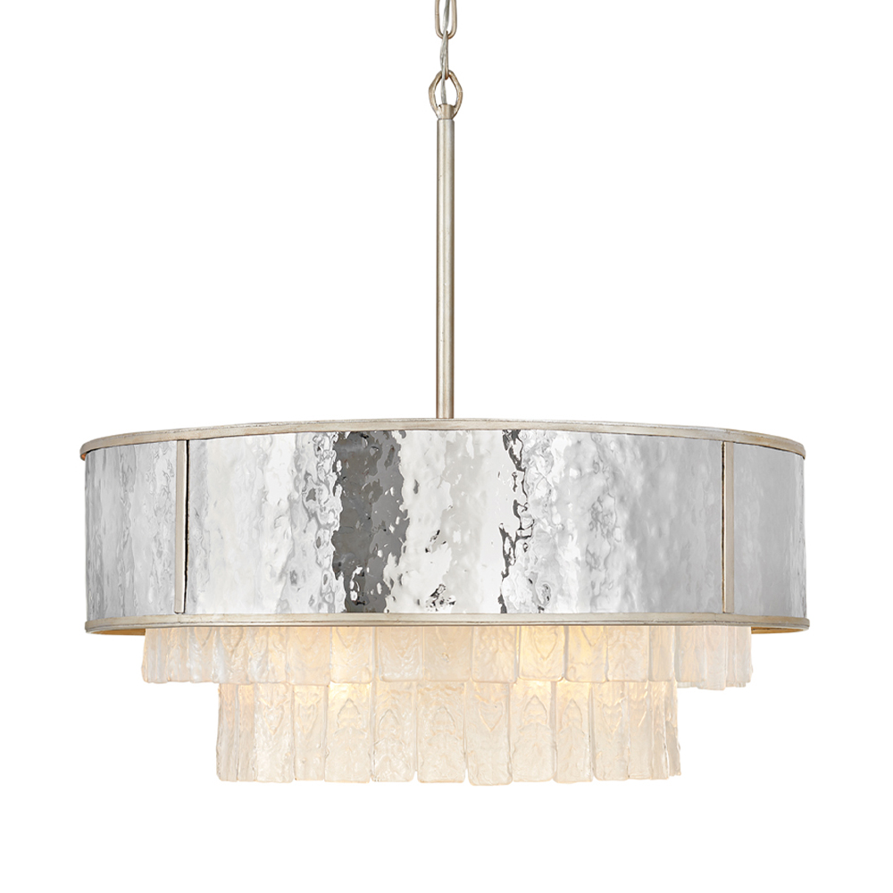Люстра круглая с подвесками из текстурированного стекла молочного цвета Hinkley