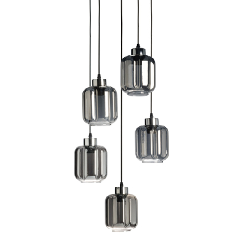 Люстра с 5-ю плафонами серого цвета Smoked Prism
