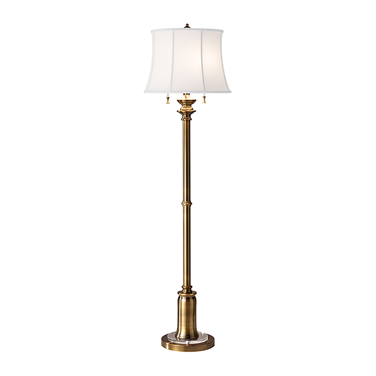 Торшер Elstead Lighting FE-STATEROOM-FL-BB. Белый хлопковый абажур. Основание в цвете - Латунь. Идеально подойдет для освещения гостинной, спальни.