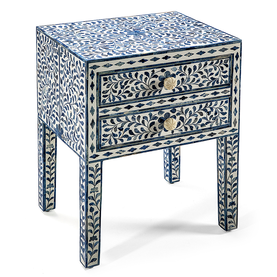 Тумбочка прикроватная White Pearl BEDSIDE CABINET 2 blue DRAWER